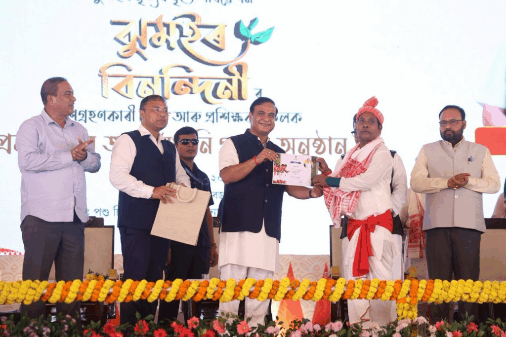 এই ঐতিহাসিক অনুষ্ঠানত অংশগ্ৰহণকাৰী শিল্পী, প্ৰশিক্ষক আৰু বিশেষজ্ঞ সমিতিৰ সদস্যসকলক বৃহস্পতিবাৰে গুৱাহাটীৰ খানাপাৰাস্থিত পশু চিকিৎসা মহাবিদ্যালয়ত আয়োজন কৰা অনুষ্ঠানত প্ৰশস্তি পত্ৰ আৰু মাননিৰে সম্বৰ্ধনা জনায় মুখ্যমন্ত্ৰী ড° হিমন্ত বিশ্ব শৰ্মাই।